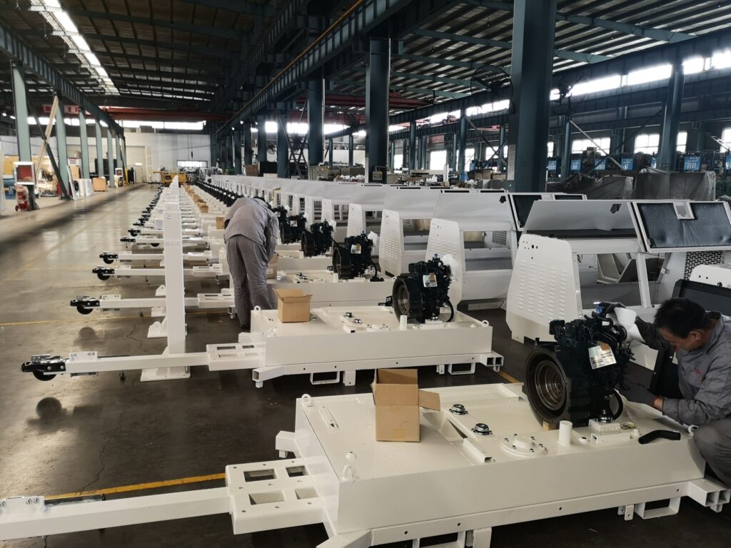 裝配車間由兩條標準發(fā)電機組裝配線和一條定制化、大型化發(fā)電機組裝配線及一條照明塔裝配線組成。